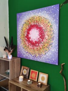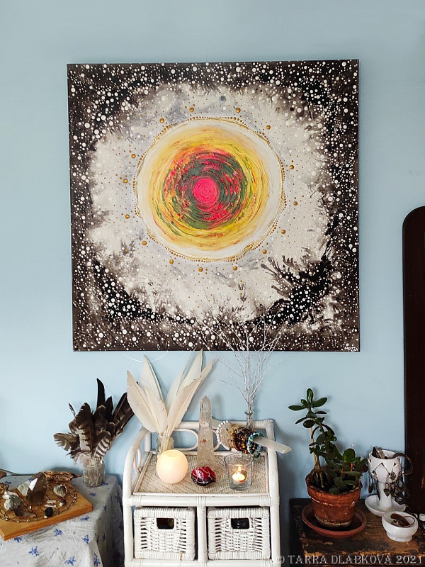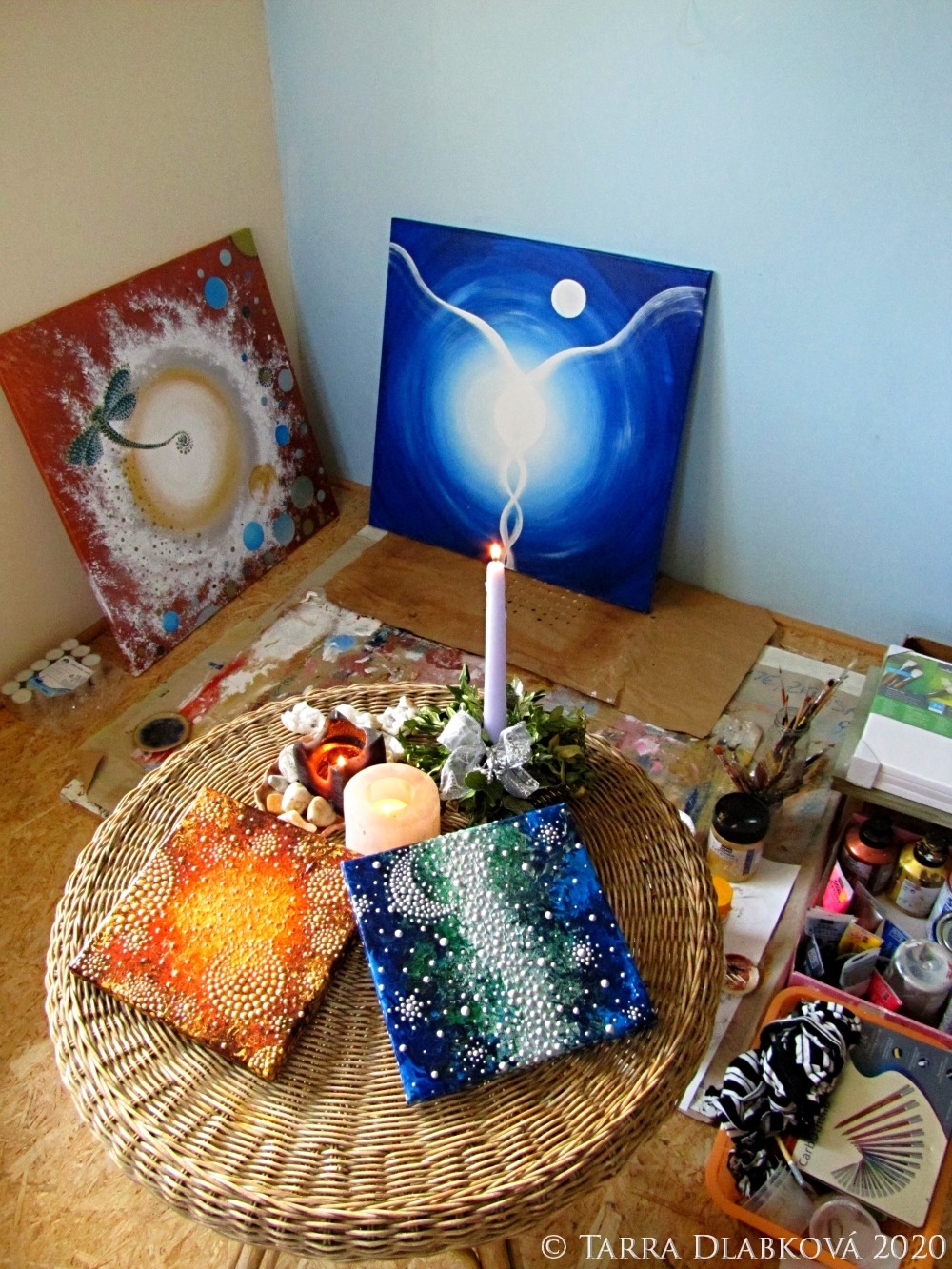 Malba je velmi vhodná pro jednotlivce pro vnitřní práci na sobě. Je to jeden z velmi hojivých a hladivých obrazů, ze kterého velmi vnímám kouzelnou energii Vánoc a Adventu.