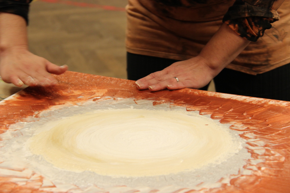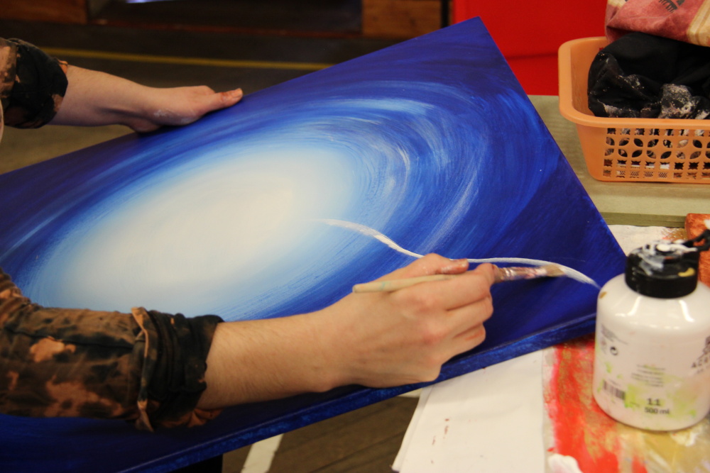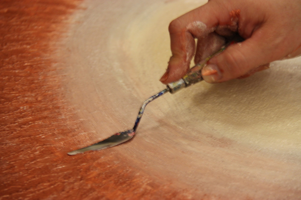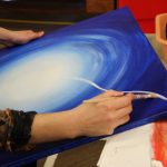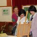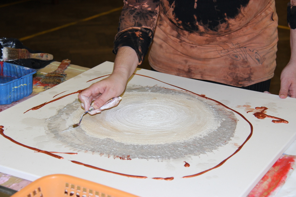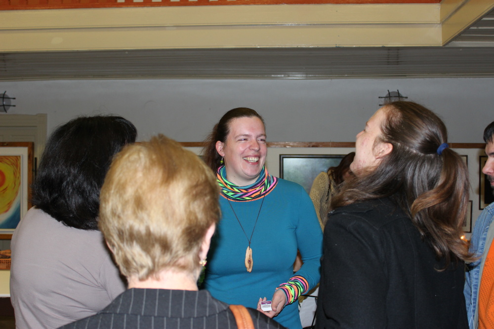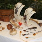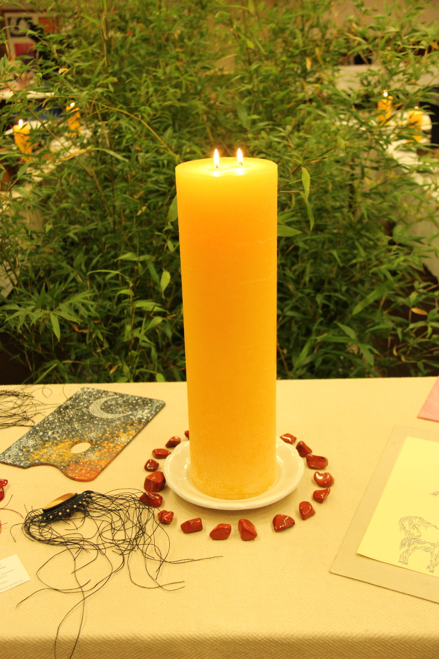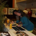 Kunvaldská sokolovna se jednoho podzimního dne proměnila v kouzelný ostrov plný zeleně, zpěvu ptáků a vůně pryskyřice. Společně s Haniou Heřmanovou (t.č. Jeništovou) jsme vymazlily prostor svými díly – já obrazy, ona šperky. K vidění byla i naše společná rozpracovaná série Tři podoby ženy, obrazy hotové i rozmalované, dřeva, dřevíčka, šperky pro každodenní nošení i třeba svatební kolekce. Na vernisáži i v následujících dnech jsme naživo ukazovaly proces naší tvorby.