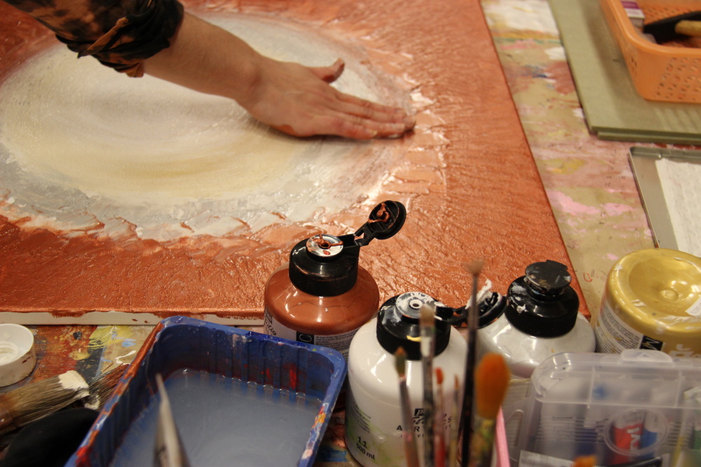 Originální malba s autorskou strukturou malovaná olejovými pastely i rukama.