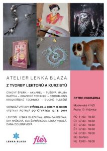 Pestrá výstava tvorby kurzistů a lektorů kurzů Ateliéru Lenka Blaza. Účastnila jsem se coby účastnice kurzů akvarelu Jitky Zajíčkové.
