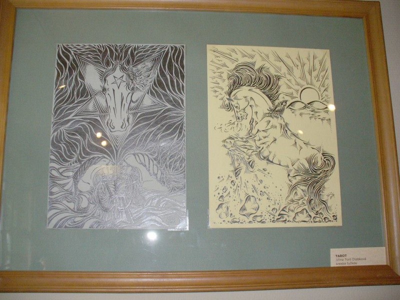 Můj „Koňský Tarot“ zde měl svou premiéru, i když vystaveno bylo pouze pár kreseb. Vážím si však té úžasné společnosti a hlavně toho, že jsem byla vybrána jako jedna z pěti z klubu Tvoříme s tarotem, abych s Koňským Tarotem doplnila tuto výstavu. Děkuji!