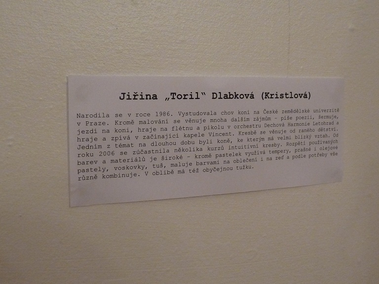 Kdo je vlastně Jiřina Dlabková alias Toril? Mladá výtvarnice, kreslířka a malířka z České Třebové, která vystavuje od roku 2008. Do této doby vytvořila něco přes 300 obrazů, z nichž velkou část průběžně nabízí ke koupi. Při své tvorbě sází na tzv. intuitivní kresbu, díky čemuž vznikají vždy originální díla plná emocí. Ale emoce nejsou to jediné, co formuje její malby. Toril ráda experimentuje, používá různé materiály a kombinuje neobvyklé techniky. Její díla ovlivňuje i silný vztah k přírodě, obzvláště ke koním.