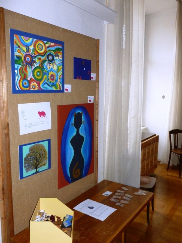 Vystavovala jsem především sérii nejnovějších velkoformátových obrazů, jako doplněk byl k vidění i Kalendář Zvěrokruhu na rok 2012 a malé kresby.
