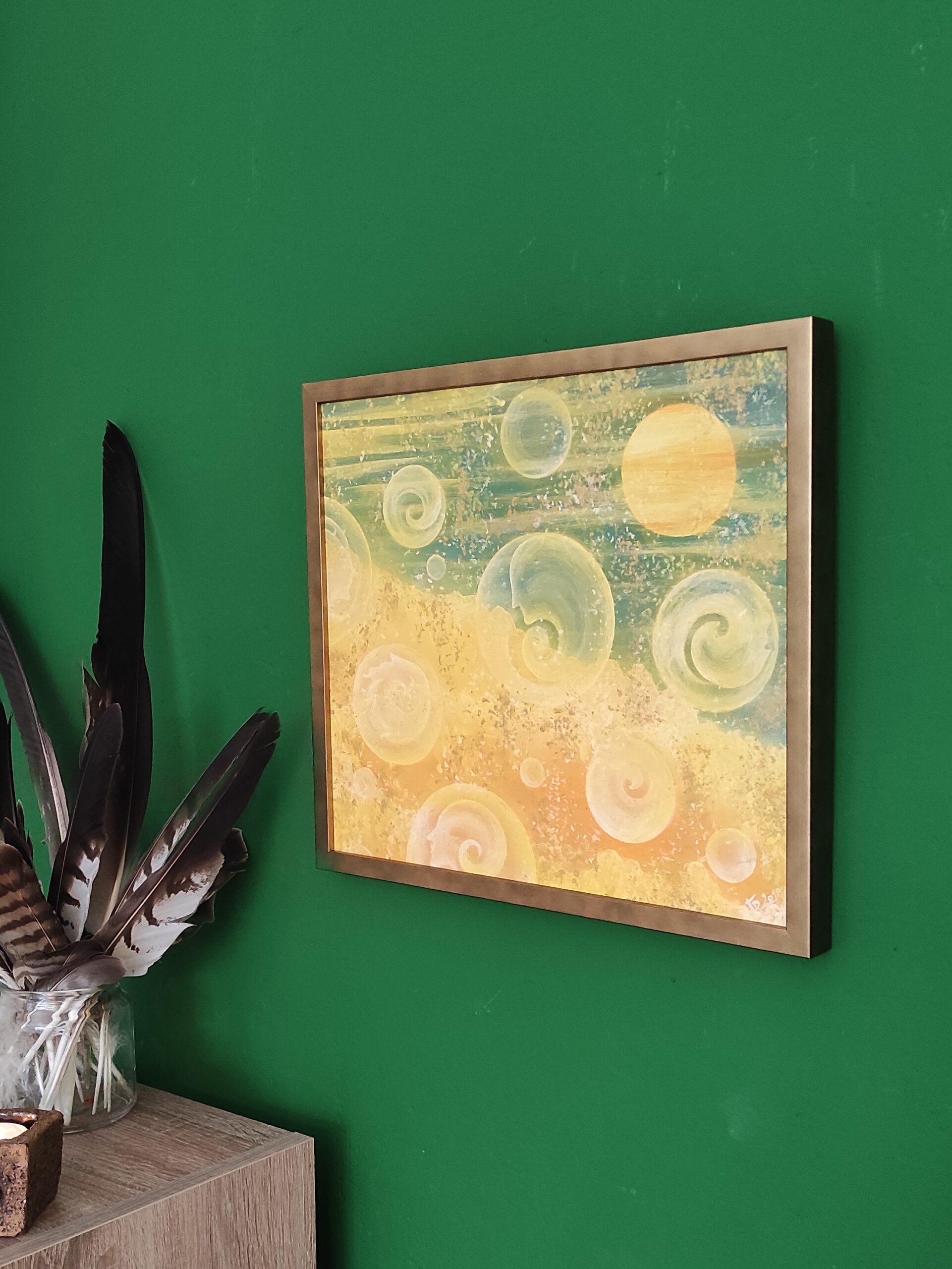 Zarámováno v jednoduchém, moderním zlatém rámu.