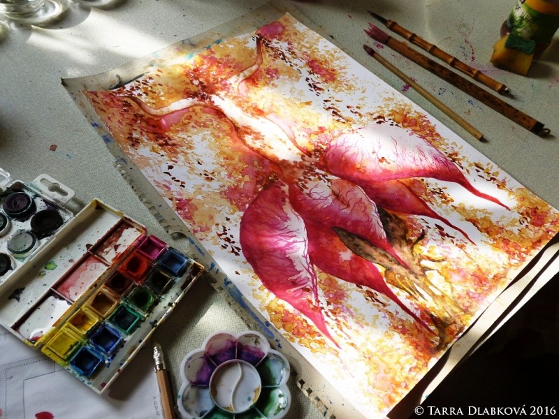 Tento kousek je první obraz, který jsem namalovala po mém stěhování z města na vesnici, do milované přírody, do domu s výhledem do zahrady… Vidíte to v…