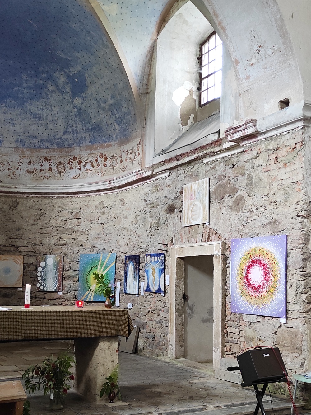Věděli jste, že mým snem bylo vystavovat jednou v kostele? Myslím v tom klasickém, protože kdybychom do toho trochu pošťourali, tak bychom seznali, že hned moje první oficiální výstava se odehrála v kostele a vystavovala jsem i na noci kostelů. Ale obojí byly kostely evangelické a to je přece jenom trochu něco jiného než klasický katolický kostel.