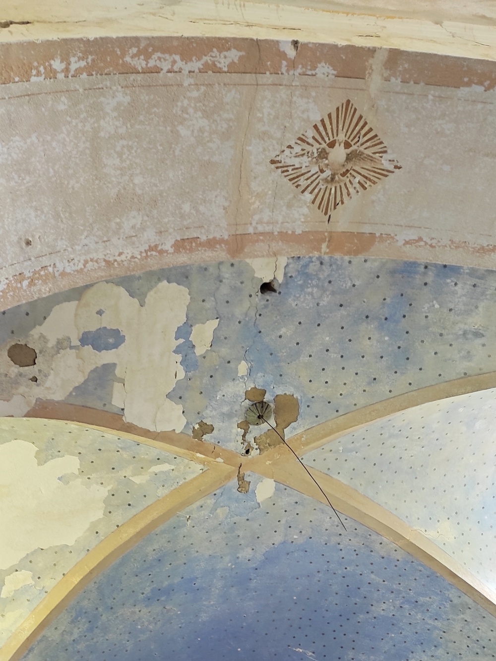 Ale nejvíc, nejvíc se mi líbila symbióza obrazu „Hvězda naděje“ a klenby kostela. Vždy jsem říkala, že mi tento obraz připomíná pohled do klenby rotundy: