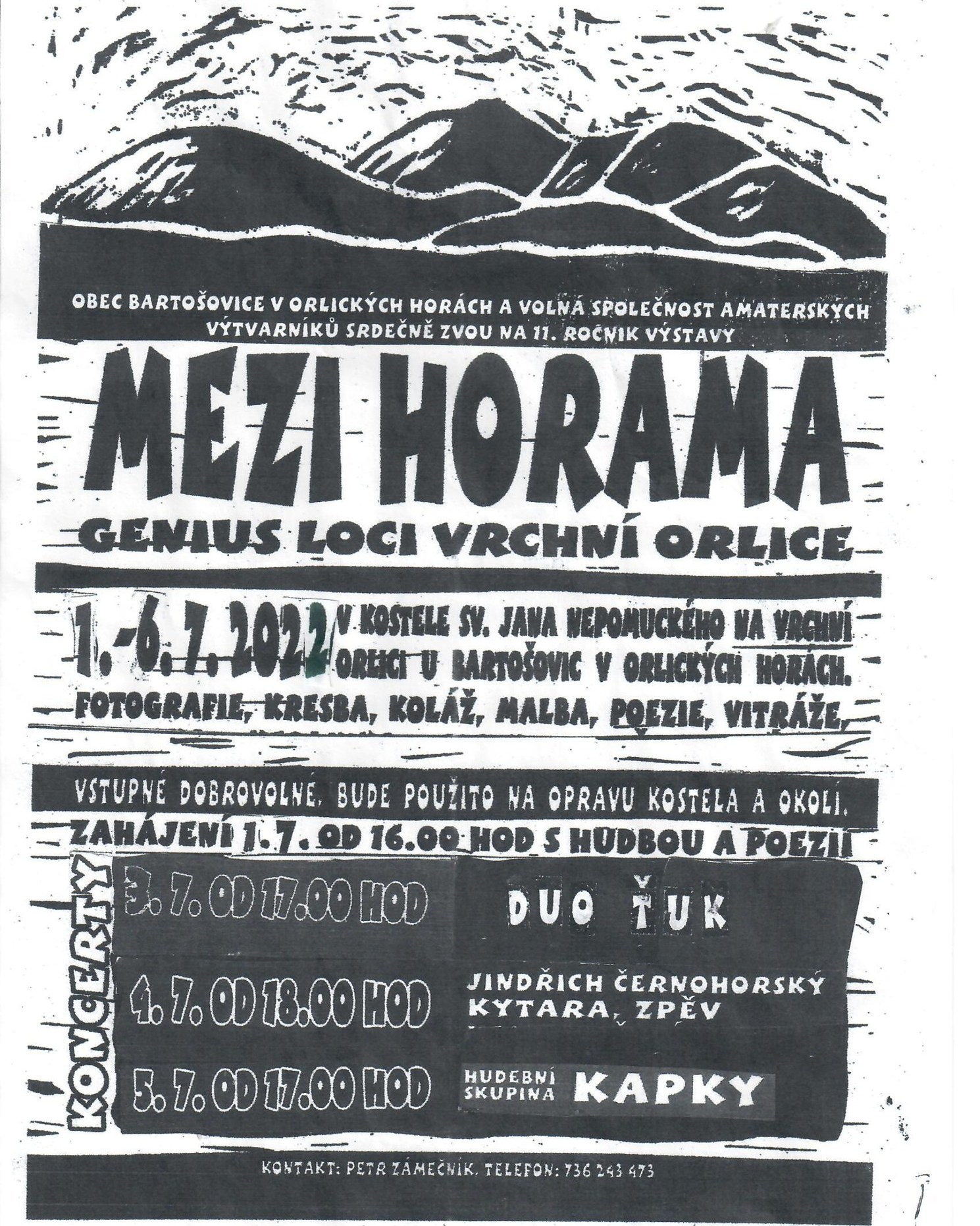 „Mezi horama“ je tradiční kolektivní výstava autorů různých výtvarných oborů z podorlického okolí. V průběhu několikadenní výstavy se vždy odehrávají i rozličná hudební vystoupení.
