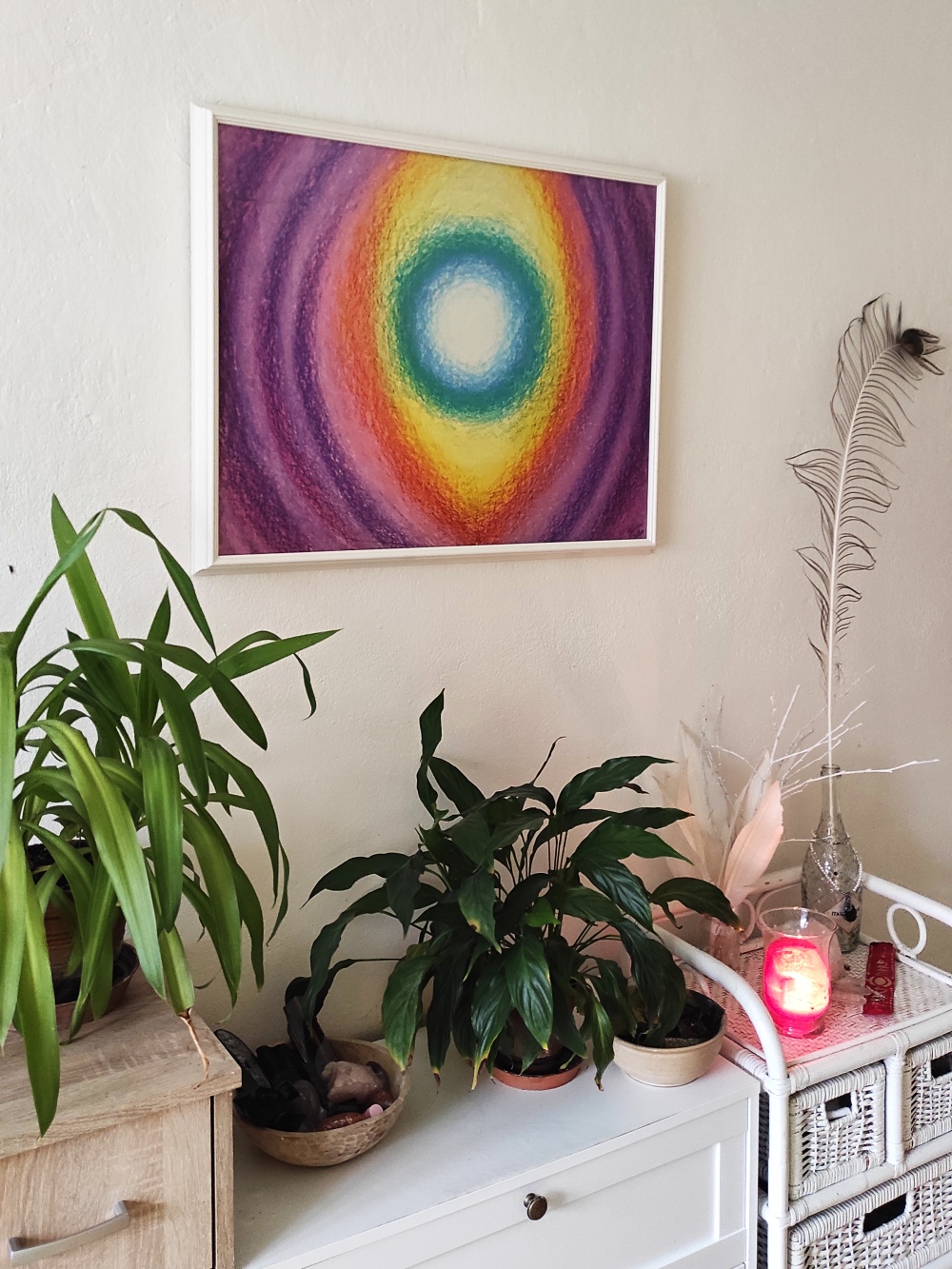 Zarámováno ve tvarovaném bílém rámu, zaskleno antireflexním sklem.
